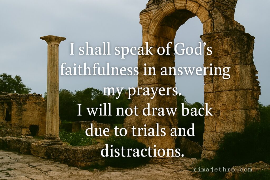 4. I shall speak of God’s faithfulness in answering my prayers. I will not draw back due to trials and distractions.