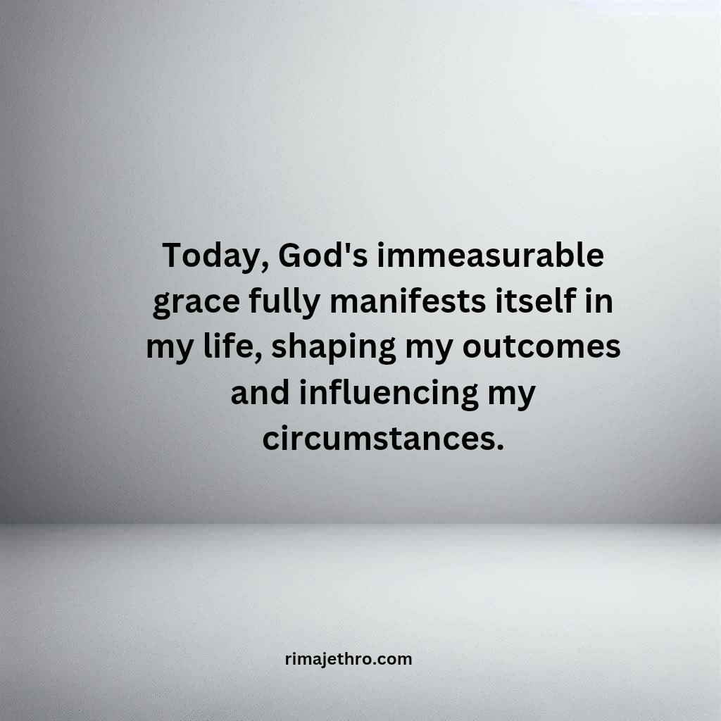 1. Today, God’s immeasurable grace fully manifests itself in my life, shaping my outcomes and influencing my circumstances.