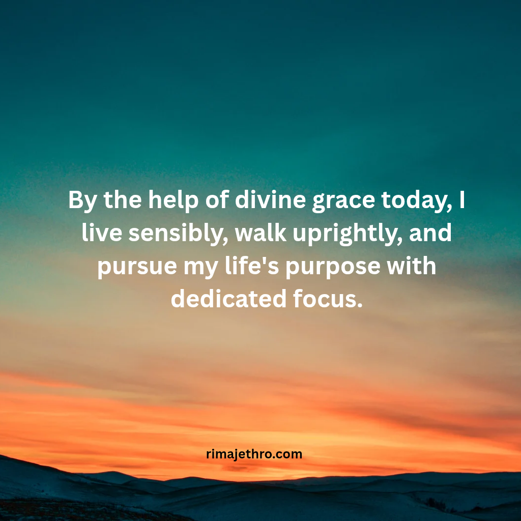 21. By the help of divine grace today, I live sensibly, walk uprightly, and pursue my life’s purpose with dedicated focus.