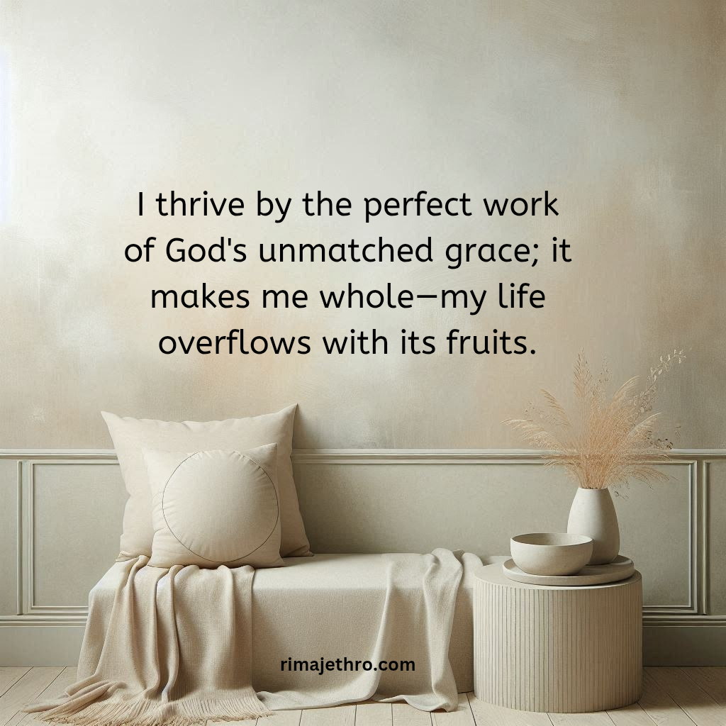 16. I thrive by the perfect work of God’s unmatched grace; it makes me whole—my life overflows with its fruits.