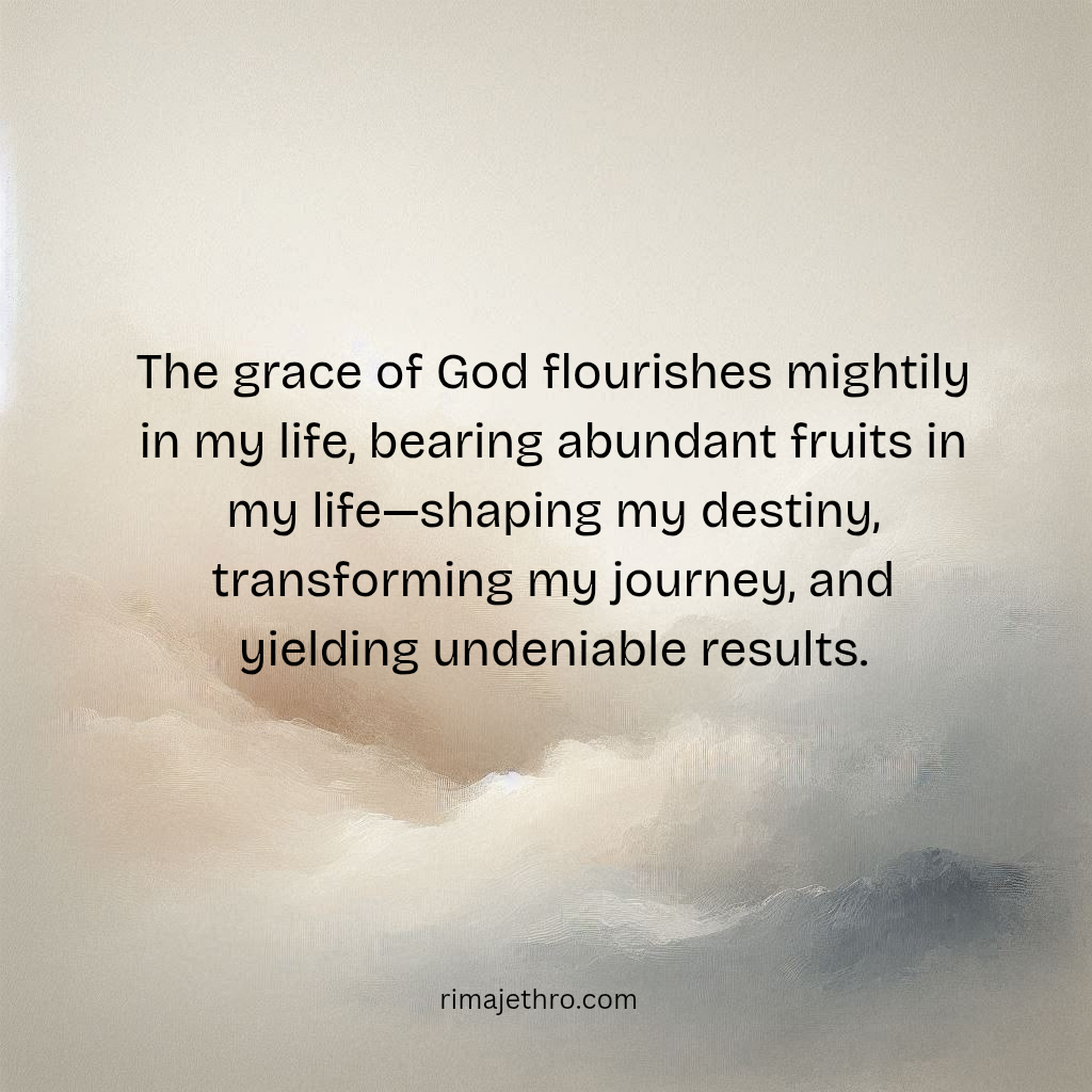 4. The grace of God flourishes mightily in my life, bearing abundant fruits in my life—shaping my destiny, transforming my journey, and yielding undeniable results.