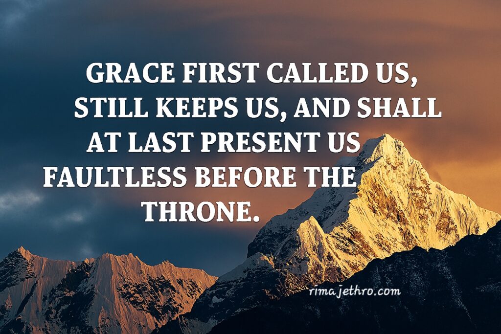9. Grace first called us, still keeps us, and shall at last present us faultless before the throne.