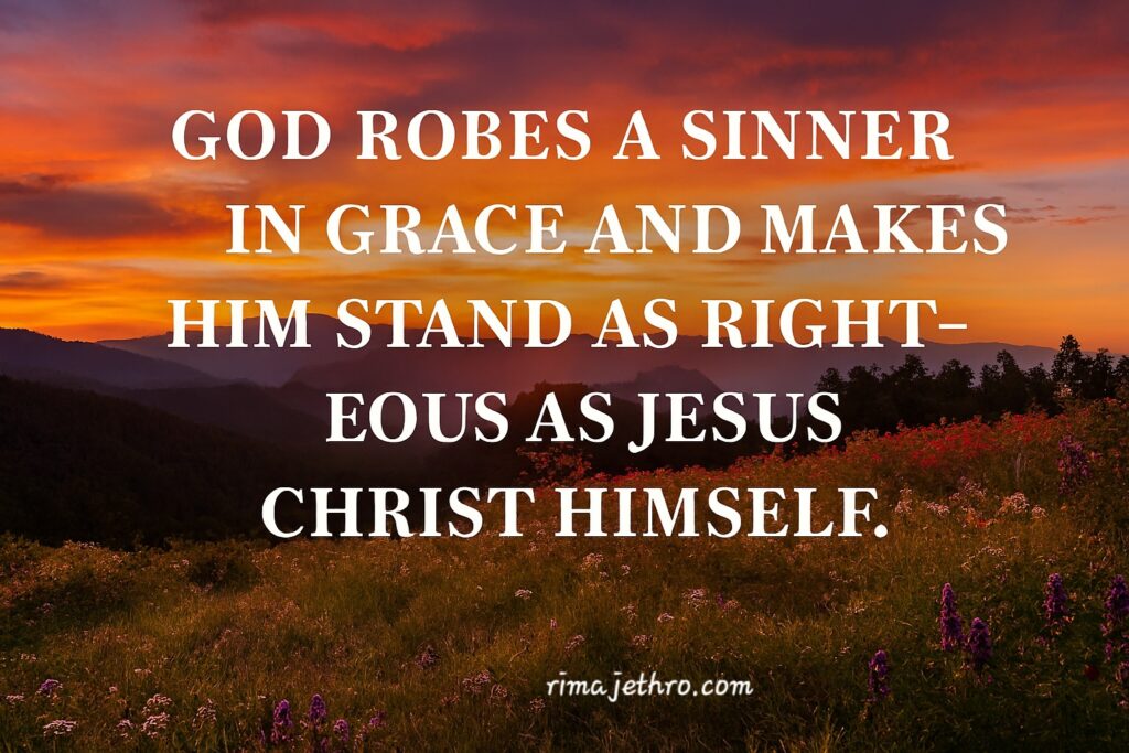 12. God robes a sinner in grace and makes him stand as righteous as Jesus Christ Himself.
