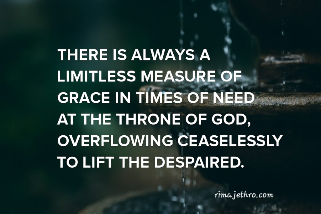 19. There is always a limitless measure of grace in times of need at the throne of God, overflowing ceaselessly to lift the despaired.