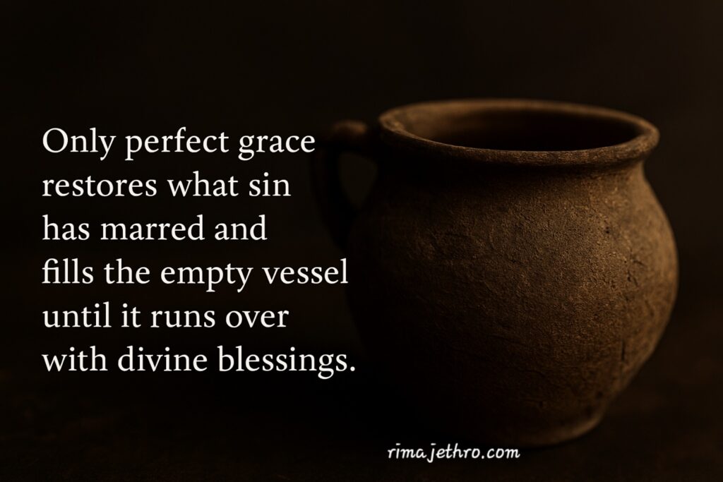 18. Only perfect grace restores what sin has marred and fills the empty vessel until it runs over with divine blessings.