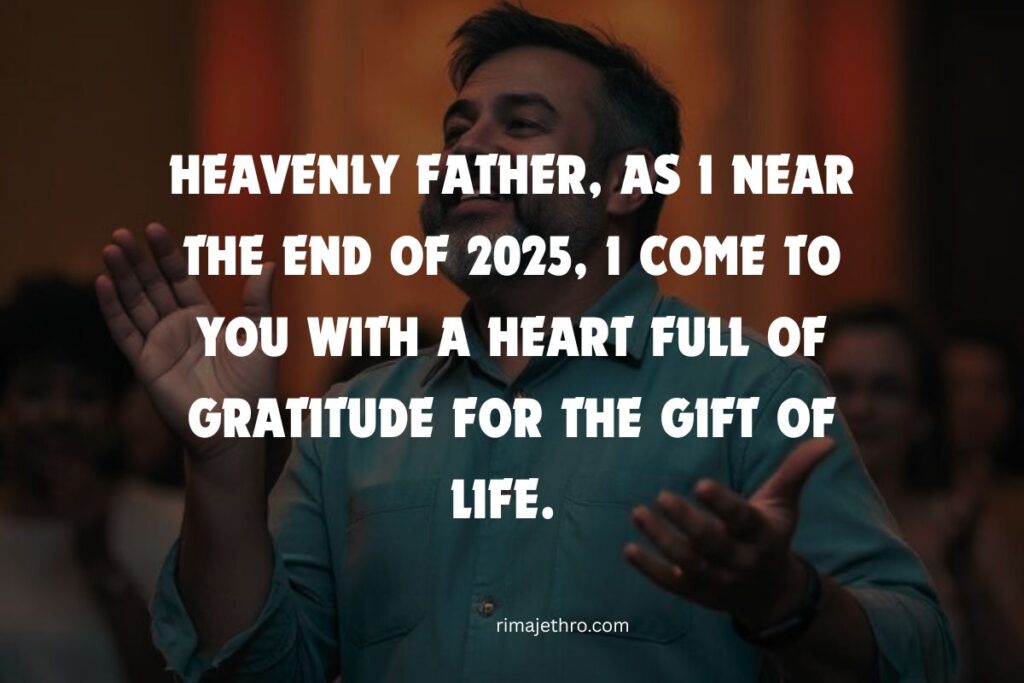 As this year comes to an end, this prayer expresses sincere thankfulness to God for life, breath, and His help through every moment of the year. It acknowledges His faithfulness in both joy and difficulty, His unchanging nature, and the hope He gives to those who trust in Him. It is a moment to thank Him for His goodness, extend forgiveness, and place the coming year into His hands with confidence in His Word.